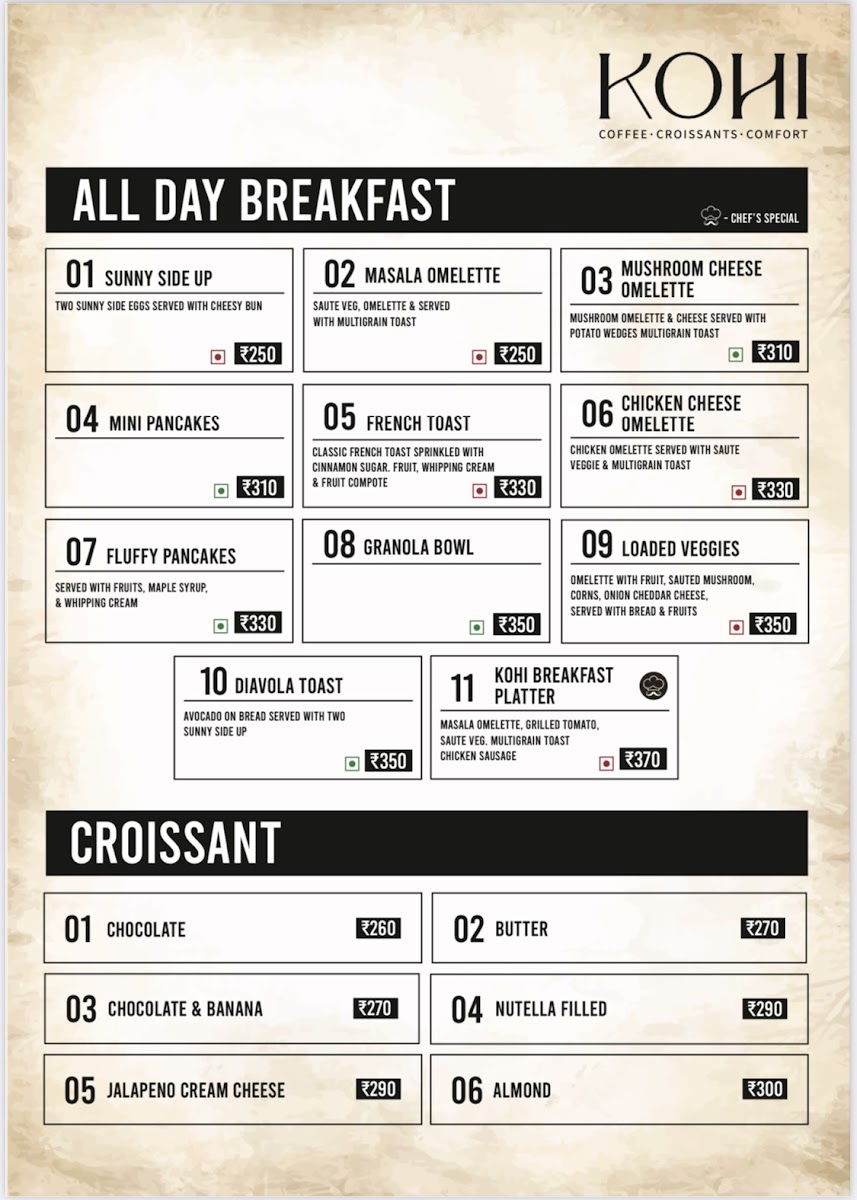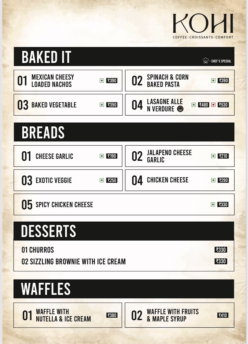 Kohi - The Cafe Menu